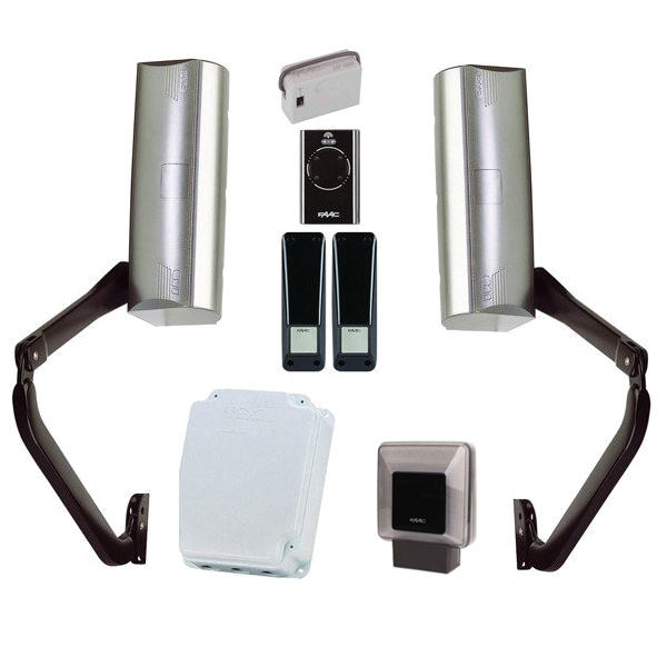 Zestaw automatyki do bramy skrzydłowej przydomowej dla skrzydła o długości 1,8m (3m z zamkiem elektromagnetycznym), do drzwi dwuskrzydłowych o maks. szerokości jednego skrzydła 1,5m. Napęd elektromechaniczny z ramieniem przegubowym 230V. Napęd z silnikiem samoblokującym, nie wymaga stosowania zamka elektromagnetycznego. Maksymalne zabezpieczenie przeciwzgnieceniowe. Akumulator gwarantujący działanie w przypadku awarii zasilania (opcja). Kompaktowa budowa, szybkość i łatwość montażu bez konieczności przeróbek adaptacyjnych. Uwaga: aby zagwarantować prawidłowe działanie należy się upewnić, że odległość między zawiasem bramy a słupkiem wynosi maks. 300mm.