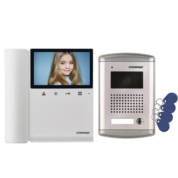 - Commax wideodomofon monitor 4,3" CDV-43K2 + kamera DRC-4CANS/RFID z czytnikiem kart i breloków