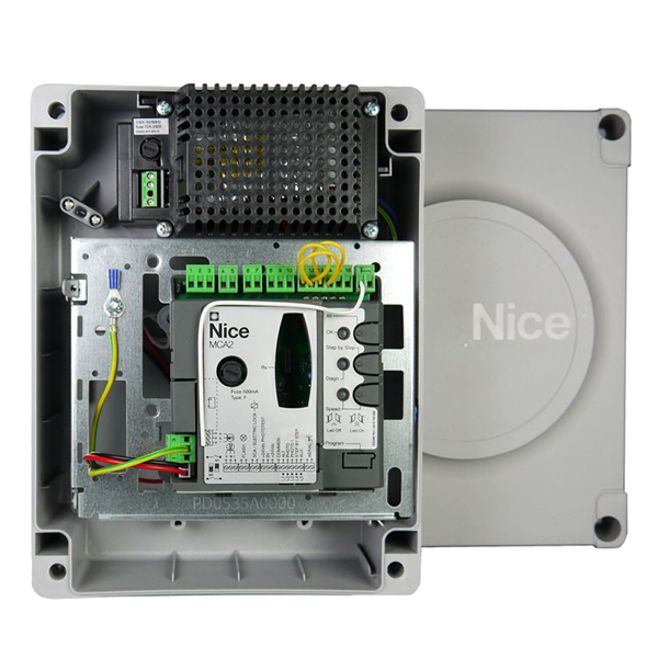 Wyrafinowana elektronika: amperometryczny system wykrywania przeszkody, możliwość podłączenia listwy rezystancyjnej 8,2K0hm, programowany czas pauzy, częściowe otwarcie bramy (funkcja furtki), zwolnienie podczas zamykania i łagodny start przy otwieraniu. Możliwość obsługi elektrozamka.