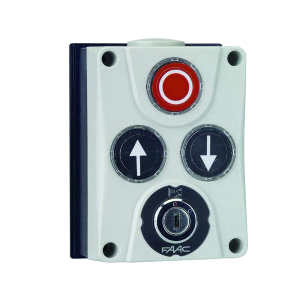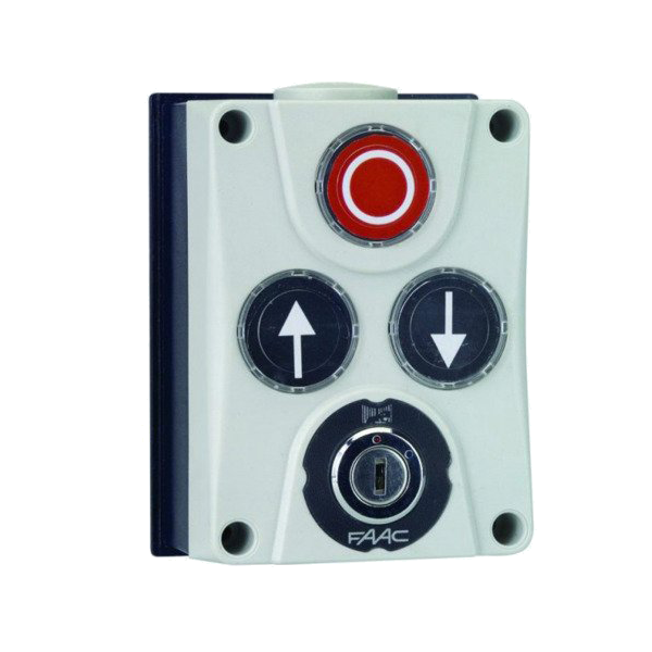 - Faac XB300 wyłącznik przyciskowy, panel sterujący trójprzyciskowy model 402500. Do instalacji podtynkowej lub na kolumnie.