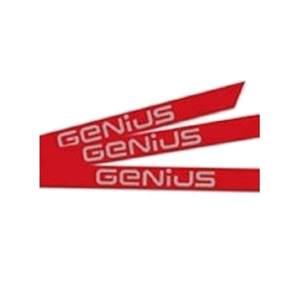 Zestaw 6 naklejek z logo Genius na ramię szlabanu.