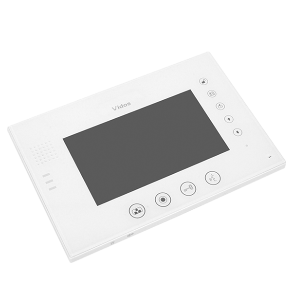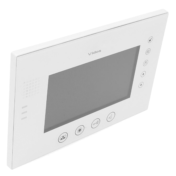 - Vidos M670W-S2 wideodomofon analogowy, monitor głośnomówiący z ekranem LCD 7". System przeznaczony jest zarówno do instalacji w domach jedno jak i wielorodzinnych.