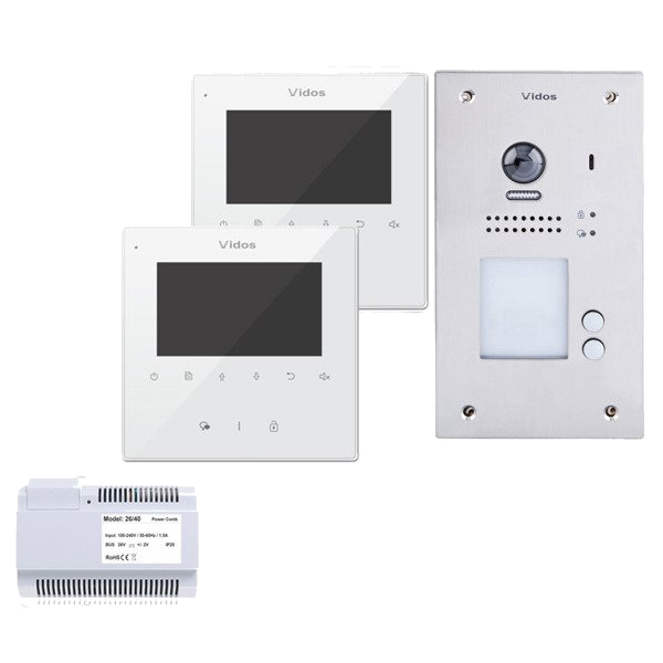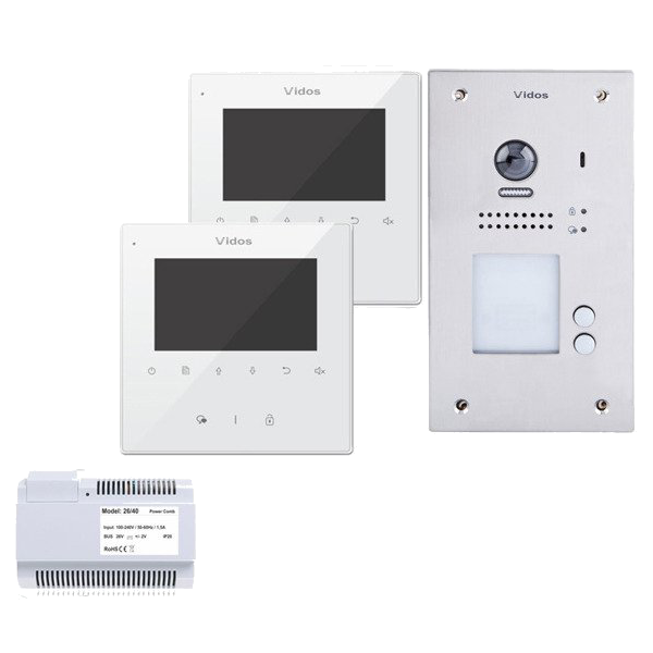 - Vidos zestaw wideodomofonowy 2 monitory M1022W + kamera S1202A + zasilacz P24/18