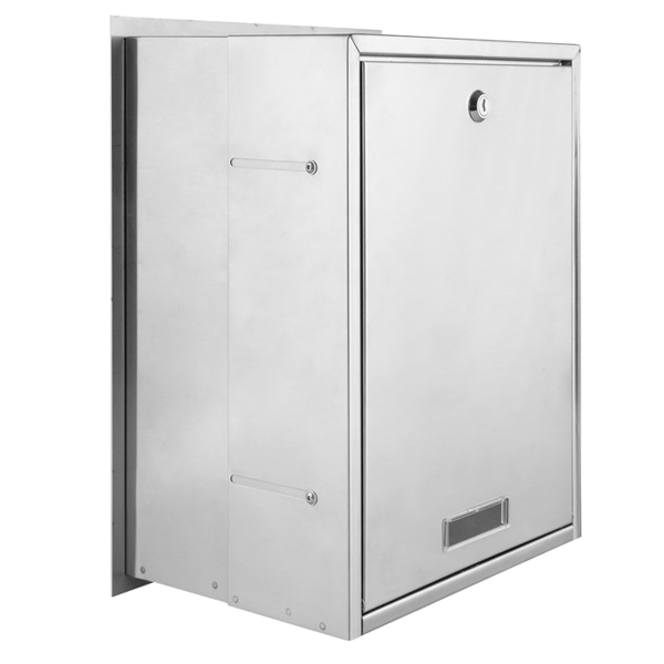 Panel przedni o szerokości 285 mm i wysokości 385 mm posiada otwór wrzutowy zabezpieczony klapką. Otwór (o wymiarach 241 x 45 mm) posiada zagięcie utrudniające wyjęcie korespondencji przez osoby niepowołane. Panel tylni wykonany jest w formie pełnych drzwiczek zamykanych na klucz . W drzwiczkach umieszczone zostało okienko, które umożliwia sprawdzenie zawartości bez konieczności otwierania skrzynki.