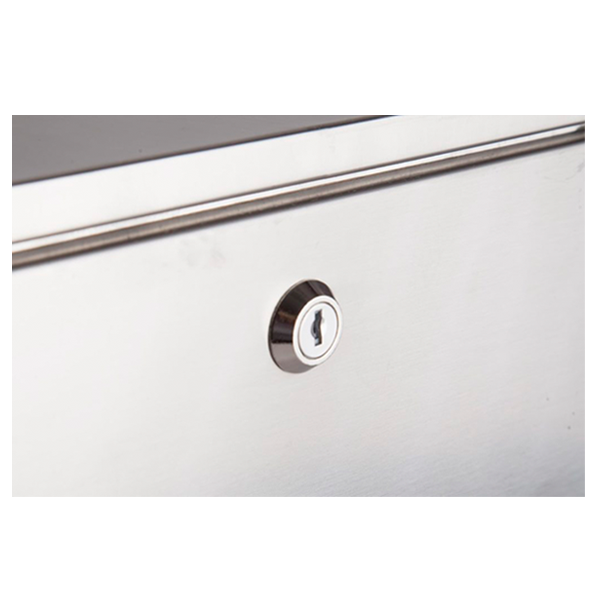 Szuflada o szerokości 265 mm jest dwuczęściowa i rozsuwana. Szuflada to pojemnik na korespondencję wbudowywany w słupek lub mur. W tym modelu została wykonana jest ze stali szlachetnej. Dzięki rozsuwanej szufladzie głębokość skrzynki może być regulowana w zakresie 190-255 mm.