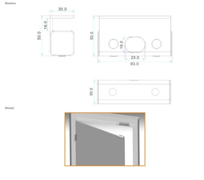 Wymiary uchwytu (szer./wys./gł.): 93 x 50 x 50 mm
