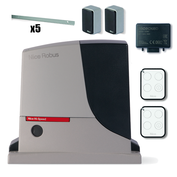 Nice ROBUS500HS zestaw automatyki 24V do bram przesuwnych o wadze do 500kg, wersja HI-SPEED zestaw z listwą zębatą i dwoma pilotami