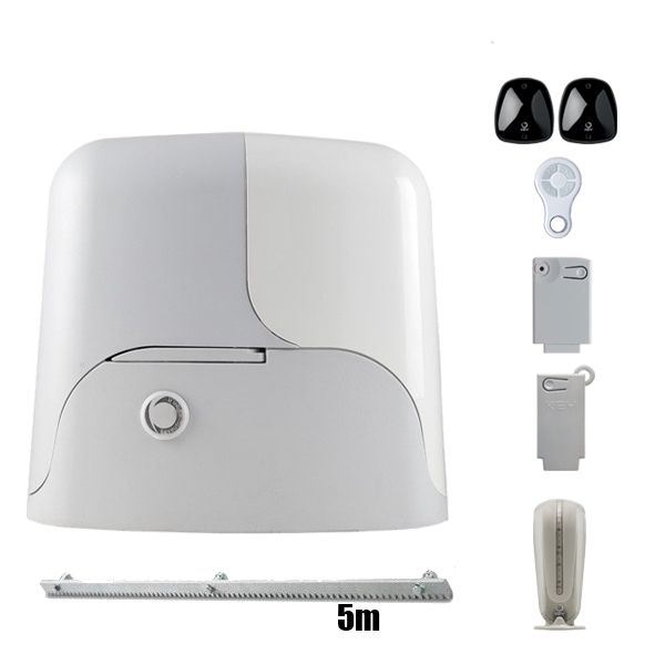 KEY SUN KIT KSUN7024EK zestaw automatyki 24V do bram przesuwnych o wadze do 700 kg zestaw z listwą. Zestaw automatyki do bram przesuwnych o ciężarze do 700 kg. Napęd posiada silnik 24 Vdc z centralą 14A oraz enkoderem. Mechaniczne wyłączniki krańcowe i automatyczne spowolnienie. W zestawie dodatkowy moduł KUBE, który umożliwia sterowanie automatyką za pomocą smartfona.