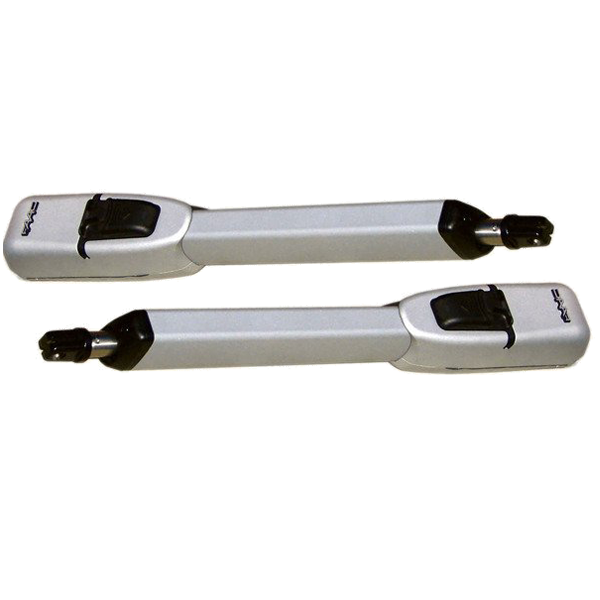 Zestaw automatyki do bramy skrzydłowej o długości 8m. Napęd elektromechaniczny 230V do bram skrzydłowych przydomowych dla skrzydła o długości do 3m (4m z zamkiem elektromagnetycznym). Siłownik posiada wyłączniki krańcowe. Dostępny w wersjach 300mm (maks. dł. skrzydła 3m) i 400mm (maks. dł. skrzydła 4m). Korpus aluminiowy na całej długości pokrywy z podwójną warstwą farby ochronnej. Ręczny mechanizm odblokowujący z uproszczonym uruchamianiem za pomocą klucza. Bezpieczne 24V zasilanie ograniczników (jeśli dostępne) z funkcją kontroli stopnia otwarcia i spowolnienia ruchu. Poziome wyprowadzenie przewodów umożliwiające niską instalację nad podłożem. Akumulator awaryjny gwarantujący  działanie w przypadku awarii zasilania (opcja dla mod. 24V).