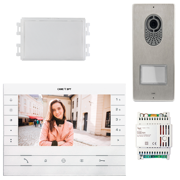 Wideodomofon Came Futura Bezsłuchawkowy zestaw wideodomofonowy Came FUTURAKITVC04. Chcesz widzieć każdy szczegół, gdy ktoś dzwoni do drzwi? Wybierz domofon Futura. Dzięki wyświetlaczowi 7", interfejsowi graficznemu i przyciskom nawigacyjnym „soft touch“, ten panel wewnętrzny zrewolucjonizuje twój sposób zarządzania systemem wideodomofonu. Dostępny w 2 kolorach, białym i czarnym. Nadaje się zarówno do budynku mieszkalnego, jak i firmy. Wśród różnorodnych funkcji nie może zabraknąć urządzeń pomocniczych, tj. przycisku „Panika“ i wywołań interkomowych.