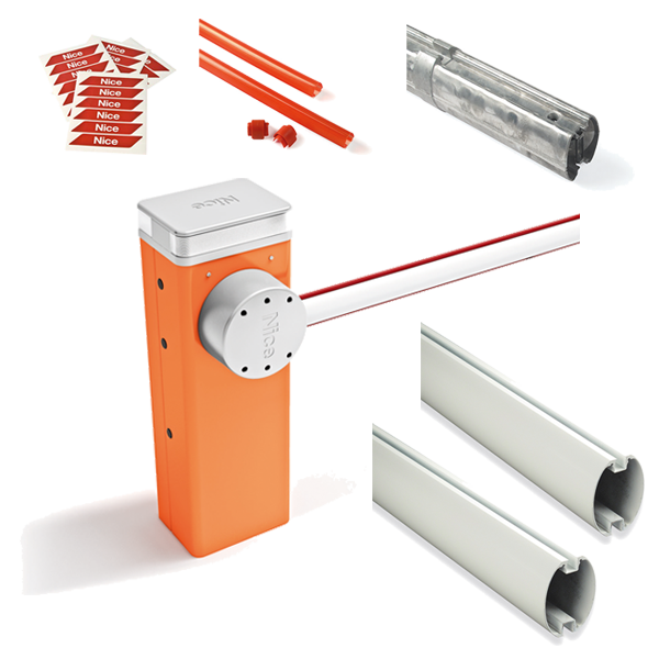 Nice M-BAR M7BAR szlaban elektromechaniczny do obiektów prywatnych, publicznych i zastosowań przemysłowych, o długości ramienia do 7m
