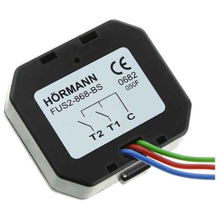 - Hormann FUS 2 BS BiSecur 439744 radiowy nadajnik podtynkowy 2-kanałowy. Moduł nadajnika do montażu w puszkach podtynkowych o przekroju min. 55 mm i głębokości min. 45 mm. Uruchamiany przy pomocy sterowników ogólnie dostępnych w handlu.