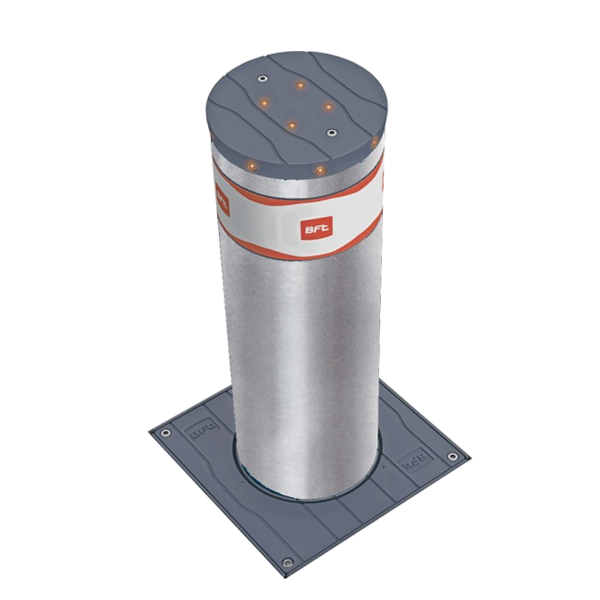BFT RANCH B 219/500 LI stała zapora drogowa z oświetleniem LED, średnica cylindra 220 mm, wysokość 500 mm, wersja ze stali nierdzewnej