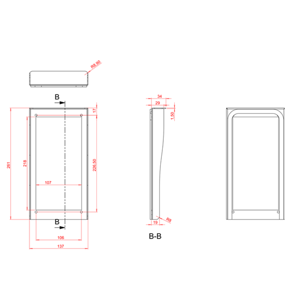 - Wymiary w mm (wys./szer./gł.): 261 / 137 / 34 (37 z uszczelką)