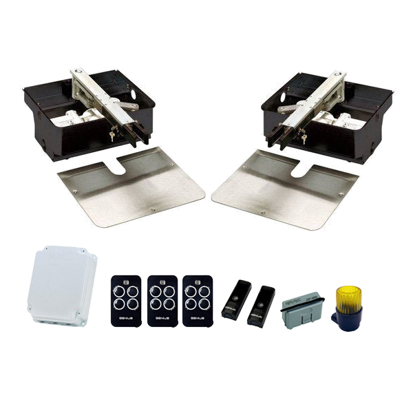 Zestaw automatyki do montażu podziemnego do bram uchylnych. Przeznaczony do bram o długości skrzydła do 3,5 m i wadze maks. 350 kg. Zasilanie 24V.