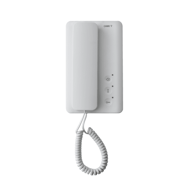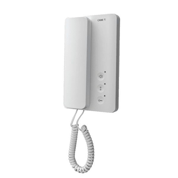 Came domofon AGT A 840CA-0040 słuchawkowy odbiornik audio. AGT jest domofonem słuchawkom charakteryzującym się prostą linią i doskonałą ergonomią oraz magnetycznym złączem, co eliminuje ryzyko upadku lub niedokładnego odłożenia.