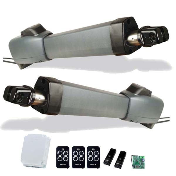 Zestaw automatyki do bram skrzydłowych o maksymalnej długości skrzydła do 4 m. Napęd dostępny w wersji 230V. Solidna przekładnia wykonana z brązu. Przewody (z dławikami) wyprowadzone poziomo, co pozwala na montaż napędu bardzo blisko powierzchni ziemi. Korpus aluminiowy zabezpieczony podwójną powłoką ochronną, gwarantującą wyższą odporność na działanie czynników atmosferycznych.