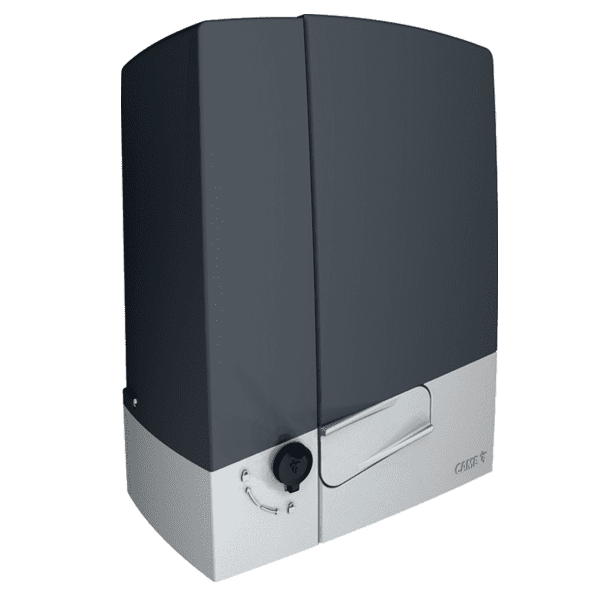 Napęd z silnikiem zasilanym napięciem 24 V, wyposażony w płytę elektroniczną z wyświetlaczem, wbudowany dekoder radiowy, urządzenie do kontroli ruchu i wykrywania przeszkód, do bram o wadze do 600 kg i długości do 18 m.
