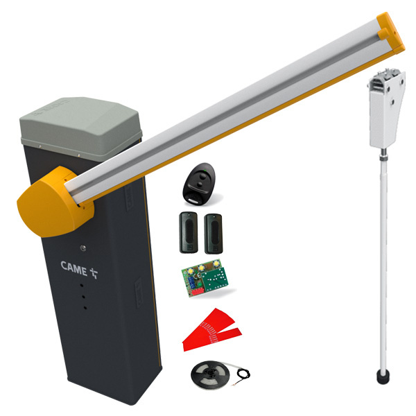Came LS4 szlaban 24V do intensywnego użytkowania z ramieniem o długości 4m, zestaw z pilotem, oświetleniem i podporą ruchomą