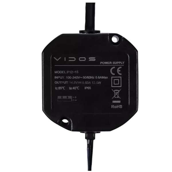 Vidos P12/15 to dopuszkowy zasilacz impulsowy przeznaczony do montażu w najpopularniejszej puszce fi 60.
