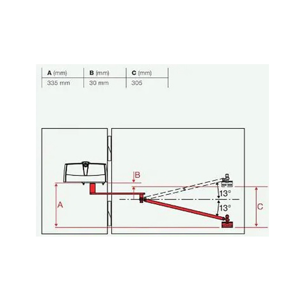 Ramię przegubowe do siłownika PREMIER. Do skrzydeł otwieranych