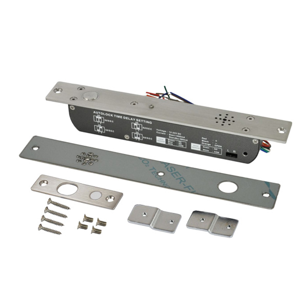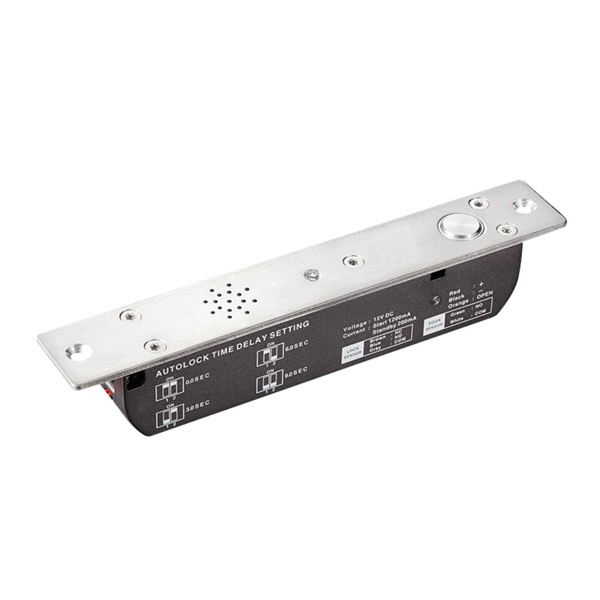 Elektrozamek ma możliwość ustawienia opóźnienia czasowego po którym elektrozamek zarygluje drzwi. Czas ten można ustawić na mikroprzełącznikach na obudowie elektrozamka. Możliwe ustawienia: 0 / 3 / 6 / 9 sekund zwłoki po fizycznym zamknięciu drzwi.